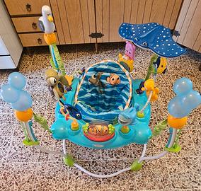 Centro Giochi di attività Saltellante, alla Ricerca di Nemo, 13+ Giocattoli, Stazione con Musica e Luci, Seduta Girevole a 360°, Regolabile, Sviluppo Motorio, da 6 Mesi+ Usato pochissimo, come nuovo. Zona Trigoria • Colore:Olivastro • Materiale:Poliestere • Marchio:Bright Starts • Fascia d'età:Da 6 + mesi • Dimensioni del prodotto:86,6L x 77,5l x 62,2H cm • Stile:Finding Nemo • Più di 13 giocattoli interattivi e attività stimolanti • Luci, musica e suoni dell'oceano • Il ventre interattivo della manta si illumina e suona delle divertenti melodie • Bruto, pulce e perla sono dei giocattoli-personaggio staccabili per essere portati dovunque • Regolabile in altezza su 4 posizioni • Seduta girevole a 360 gradi • Imbottitura del seggiolino lavabile in lavatrice