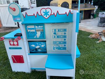 Centro attività studio medico multifacciale in legno Spazio giochi con area di attesa, sala esami, lavabo e area reception