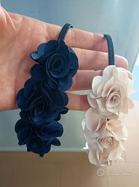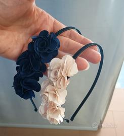 Vendo n.2 cerchietti da cerimonia per bambina a 5 euro cadauno, anche singolarmente. 1 con fiori colore blu 1 con fioni colore panna