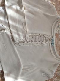 abito in tulle con lavorazione sul corpetto e gonna ad onde. impreziosito da una cintura a fiori e il cipria in cotone con lavorazione a mano taglia 14 anni si Abel e Lola, indossato solo una volta dopo la comunione in Chiesa.