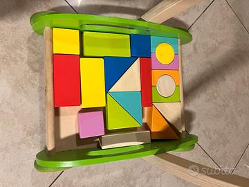 Carrettino e set costruzioni in legno. Usato poco praticamente nuovo.