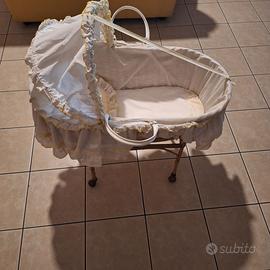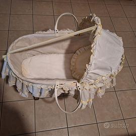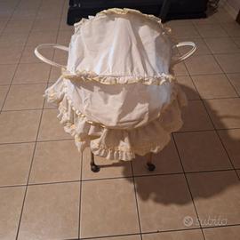 Vendo inutilizzata cesta culla in vimini per neonato completa di materassino e cuscino.