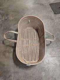 Cesta culla neonato vimini senza difetti, dim. 73 x 43 x 32 cm altezza testa x 25 altezza piedi, prezzo 35 euro, zona corso Venezia Torino Nord, possibilità di trasporto.