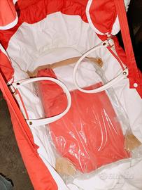 Vendo culla in vimini colore rosso e bianco, pari al nuovo, pratica per il trasporto grazie alle comode maniglie, oltre che leggera , imbottita e super confortevole. È realizzata artigianalmente, include il materasso, il piuminetto e il cuscino. Ritiro a mano su Torino