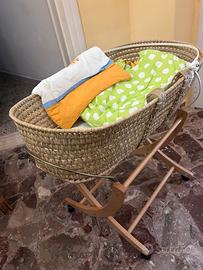 Cesta neonato pali con supporto. Usata per 4 neonati ma ancora in buone condizioni. Completa di rivestimento, materassino e piumoncino come da foto.Trascinabile sul supporto dotato di rotelle o staccabile dallo stesso e trasportabile con maniglie.