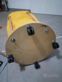 Bellissimo e ampio cestone porta giocattoli con ruote in tessuto giallo molto robusto, Lazzari. bel complemento di arredo . Struttura portante in legno, 70cm altezza e 35 larghezza . In una cameretta fa bella figura.#cameretta #bambini #portagiochi #legno #arredobambini #montessori #g iocattoli #ordinocasa #kidsroom #handmade #scatola #design #legnonaturale #shabbychic