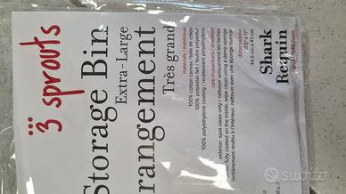 Cestone in cotone spalmato con applicazione squalo. Utilizzato in esposizione, da pulire in alcuni punti. Misure 45cm diametro circa 45cm altezza circa. Prezzo da nuovo 30/40€ dipende dai siti.