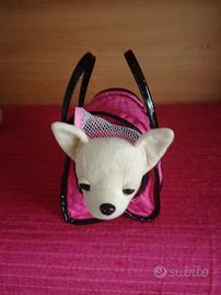 Chi Chi love praticamente nuovo, modello Paris, con abitino con inserti che si illuminano al buio, completo di trasportino con manici in vernice nera e copertina personalizzata.