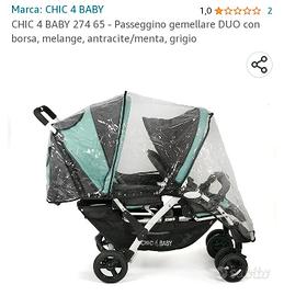 Passeggino gemellare DUO colore melange, antracite/menta, grigio usato pochissimo. Disponibili ulteriori foto per chi interessato. Misure chiuso 110x54x40 cm. Ritiro in Aosta o zone limitrofe, spedizione da concordare