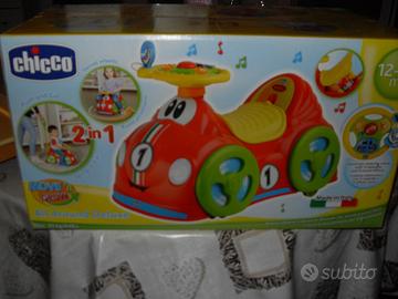 Vendesi automobilina Chicco All Around cavalcabile con vano porta giochi. Si tratta di una 2in1 in quanto nei primi mesi può essere spinta da un adulto e successivamente permetterà al bimbo di imparare a stare in equilibrio in autonomia. Ha un paio di adesivi leggermente rovinati, ma meccanicamente ed elettricamente è pari al nuovo