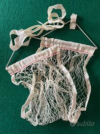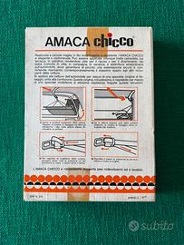 Amaca Chicco vintage anni 70-80 Nuova ancora imballata nella sua confezione originale. Pezzo unico da collezione. Introvabile. Realizzata a piccole maglie, in filo morbidissimo e resistente. L’Amaca Chicco è confortevole. Può essere applicata ovunque (nella camerata, sul terrazzo, in giardino) rendendosi utile per il riposo o per il divertimento del bebè. Comoda in città, in campagna, in vacanza è addirittura straordinaria sull’automobile, dove garantisce al piccolo una sistemazione sicura e confortevole riservando, contemporaneamente, il massimo spazio agli altri occupanti della vettura. Si applica alla vettura dell’automobile per mezzo di un’apposita cinghia di fissaggio, unita alla confezione. Questa cinghia, robustissima, è regolabile per mezzo di uno speciale mollettone di altissima resistenza. Sul retro della scatola le istruzioni per il fissaggio (vedi foto 2). Cotone anallergico ipermorbido. Lunghezza 90 cm + ganci. Lavabile.