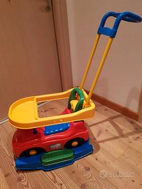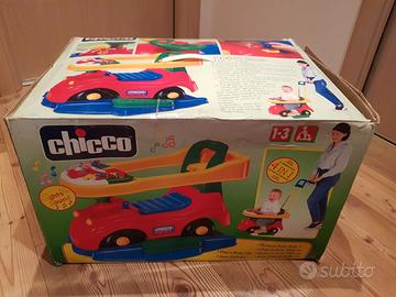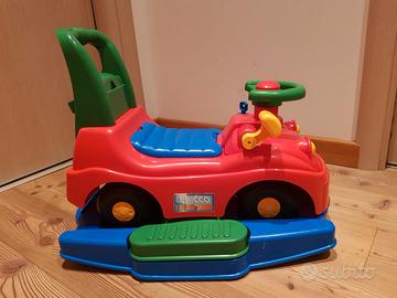 Auto Deluxe Chicco cavalcabile utilizzabile anche a dondolo o spinto da un adulto con apposito manico sul retro. Compreso di gioco con melodie e voci di animali staccabile e utilizzabile separatamente (pile non incluse). Tutte le parti sono in ottimo stato, usato solo in casa.
