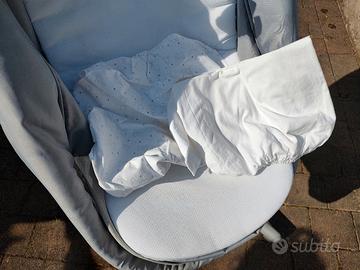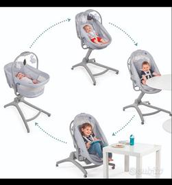 Ottime condizioni,pulita e igenizzata. Prezzo di listino della baby hug 270 €. Regalo insieme anche materassino per la nanna (prezzo di listino circa 30 €)+ kit di due lenzuoline (prezzo di listino circa 27 €) per ricoprirlo e kit pappa ( prezzo di listino circa 50 €) per renderlo seggiolone. Culla (0-6 mesi). Con la sua forma avvolgente accoglie il bambino nei suoi primi sonnellini. Sdraietta (0-6 mesi). Lo schienale reclinabile in diverse posizioni e il morbido riduttore assicurano il comfort in tutte le fasi della crescita. Seggiolone (6-36 mesi). Baby Hug 4in1 è perfetto anche per lo svezzamento. Basterà posizionare lo schienale dritto, regolare l'altezza attraverso il comodo pedale ed accostare Baby Hug al tavolo. Prima sedia (6-36 mesi). Abbassando completamente la seduta, Baby Hug 4in1 si trasforma in prima sedia bassa per le merende da soli dei bambini. Il tessile con le finestre in rete rende più agevole il passaggio dell'aria all'interno della culla e ti permette di poter sempre vedere il tuo bambino.