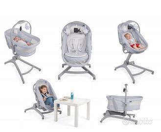 Un'accogliente culla, ideale dalla nascita, con giostrina inclusa, per il riposo del neonato; una sdraietta con arco giochi, per intrattenere il bebè dopo il suo riposino; un seggiolone pappa, utilizzabile a partire dai 6 mesi; una sediolina bassa, per giocare insieme ai genitori e vivere momenti in loro compagnia. Struttura come nuova e tenuta con cura , unico “difettuccio” come si puo vedere dall’immagine il copri schienale é stato accidentalmente macchiato con la candeggina. Vassoio incluso nel prezzo. ( in negozio si paga separatamente). Vendo gia montato,quindi qualcuno della stessa città.
