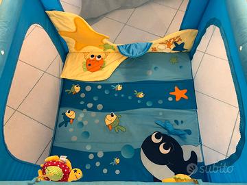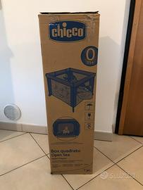 Vendesi box della Chicco a tema mare con possibilità di apertura laterale e sacco per l trasporto. Ampio box Open Sea di Chicco ricco di attività manuali per sviluppare le capacità visive e le percezioni tattili del bambino. Dalla forma quadrata, è dotato di un morbido e colorato tappeto, con tema marino, utilizzabile anche fuori dal box. I lati del box sono realizzati in tessuto a rete per consentire a mamma e papà di tenere sempre controllato il bebè e sul lato più corto è stata posta una zip per facilitare uscita. Gli animaletti 3D possono essere appesi alle asole poste sul bordo superiore del box tramite gli appositi nastri con velcro. Facile da trasportare grazie alla struttura pieghevole e alla borsa per il trasporto di serie. Il box Open Sea è la scelta giusta per regalare al bambino un luogo divertente e sicuro dove giocare e rilassarsi.