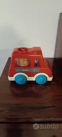Carillon vintage Chicco Bus. È un carillon meccanico che suona e si muove. Include personaggi mobili come l'autista e un rullo con bambini.