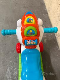 Il giocattolo è stato utilizzato pochissimo, è perfettamente funzionante, lo si può utilizzare come dondolo o a spinta, pulito e senza segni di usura. Ideale per stimolare i sensi del bambino grazie a luci, suoni e melodie, tipici della qualità Chicco. Sempre tenuto con cura, proveniente da ambiente senza fumo né animali.