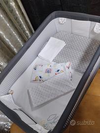 Culla mai usata, ricevuta in regalo a novembre 2025, ho provato a far dormire mia figlia 3 notti, e non c'è mai voluta restare. Do compresi nel prezzo 3 parure lenzuola composte da sotto, sopra e federa, più 3 salva materasso un lato impermeabile e uno in spugna, più un materasso aggiuntivo, completamente sfoderabile (vedi foto) acquistato da me apparte. Vendo con borsa e scatola originale