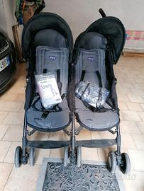 Passeggino Gemellare, Chicco Echo Twin Nero, usato pochissimo perché acquistato per i nonni, completo di cappottina per la pioggia.