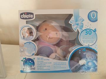 Vendo peluche First Dreams Chicco in ottime condizioni,pari al nuovo. Il peluche è conservato nella scatola originale in ottime condizioni. All'interno del peluche si trova il carillon rimovibile per permettere il lavaggio del peluche e garantire sempre la massima igiene al tuo bambino. Melodie,colori intercambiabili e volume regolabile. Ottima idea regalo. Il peluche funziona con 3 pile stilo AA non incluse.