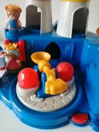 Diverse attività di gioco con vari oggetti e personaggi ,catapulta, cannone, porte che si aprono ,torri smontabili, ecc..