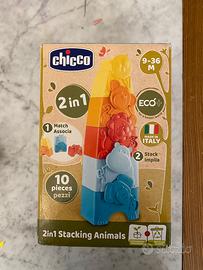 Gioco della Chicco per bambini dai 9 ai 36 mesi. Pezzi da impilare. Fatto in platica riciclata