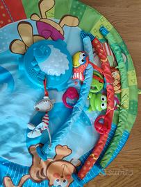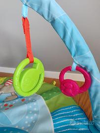 Vendo palestrina Chicco con musica e luce multicolore in ottime condizioni, praticamente pari al nuovo. 25 minuti di musica continua ed effetti sonori preregistrati per accompagnare il bambino nei momenti di divertimento e relax. Vi è anche la possibilità di collegamento con il cellulare per trasmettere nuova musica. Sette pendenti multi-attività, tra quali un specchietto, Crinkle, e anelli in plastica per la dentizione. Il tappeto morbido h un diametro pari a 86 cm. Lavabile in lavatrice.