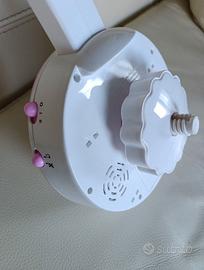 Bellissima giostrina, ideale fino a 18/24 mesi. Si può montare sul lettino con le sbarre per intrattenere / addormentare il bebè. Usata ma praticamente nuova causa doppio regalo. La giostrina funziona anche da proiettore di immagini che vengono proiettate sia sulla parte aerea che ruota, sia sul soffitto, creando un'atmosfera di stelle molto bella e rilassante. Con luce notturna e sensore sonoro. Il pianto del bambino attiva effetti musicali e luminosi per tornare a rilassarlo. Ricca selezione di musiche con 18 minuti di proiezione e musica. C'è anche il telecomando (piccolo mouse) per attivazione e/o spegnimento della giostrina a distanza. Funziona a pile (già inserite)