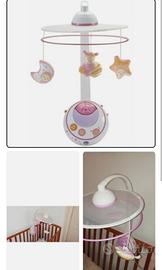 la proiezione si propaga contemporaneamente sulla giostrina e sul soffitto della cameretta diffondendo una magia unica che abbraccia piccolo, mamma e papà. Questa magia accompagna il bambino anche quando diventa grande. Infatti, rimuovendo la parte aerea, diventa un pratico proiettore da lettino, con luce anti buio e una ricca selezione di melodie. Grazie ai due grandi pulsanti sul fronte del pannello si possono selezionare melodie classiche o new age.