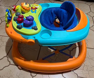 Il girello Walky Talky è ricco di giochi per il divertimento del bambino: Barra gioco 3D e attività elettroniche: luci e suoni per trasportare il tuo bambino nella jungla con tutti i suoi animaletti. Seduta confortevole: progettata per il massimo confort e sostegno per i primi passi del bambino; può essere regolata su tre livelli diversi per permettere sempre al bambino di toccare terra con i piedini. Inoltre, quando non in uso può essere completamente compattato. altezza regolabile