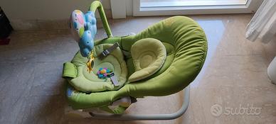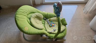 Chicco Hooplà sdraietta neonati e Bambini da 0 Mesi a 18 kg, ottime condizioni. funzioni dondolo e poltroncina, con barra gioco, schienale regolabile e cuscino riduttore, chiusura compatta, colore verde.