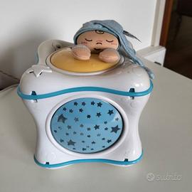 Proiettore e luce notturna per bambini “Chicco Raincow Cube”. Permette di scegliere tra diverse figure e colori di luce per creare un’atmosfera sempre nuova nella cameretta. Permette di ascoltare diverse melodie rilassanti e , grazie ai colori proiettati anche i benefici della cromoterapia. Può inoltre essere utilizzato come luce notturna. Ottime condizioni in quanto usato pochissimo. Scatola non disponibile.