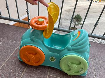 La macchina cavalcabile è dotata di ruote piroettanti che permettono di moversi in ogni direzione, ha uno scomparto sotto il sedile per riporre piccoli giocattoli e un clacson sul volante.