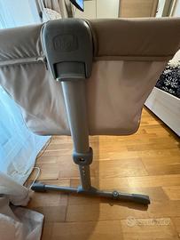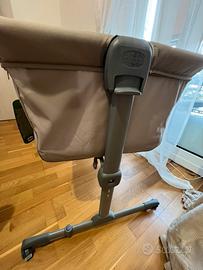 Culla neonato per fianco letto , altezza regolabile, con lato apribile e con entrambi i lati a rete per buona circolazione d’aria. Incluso di materasso. Nuovo, mai usato ancora con etichetta . La fodera del materasso é in cotone, il letto in poliestere 100% riciclato. Nessun difetto.