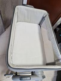 Culla in ottime condizioni utilizzabile fino ai 6 mesi del bambino, questa versione ha la possibilità di impostare anche la modalità dondolo, ha 2 finestre lungo tutti e 2 i lati per un miglior ricircolo d'aria, bariera laterale a scomparsa molto più comoda degli altri modelli. La culla cosleeping dal design esclusivo per tenere il bambino accanto a sé durante la notte, dalla nascita fino ai 6 mesi. Praticità di utilizzo grazie al pannello laterale scorrevole che consente di aprire e chiudere la barriera con una sola mano. In caso di utilizzo come culla tradizionale, Chicco Next2Me Magic Evo è dotata della modalità dondolio per cullare il bambino dolcemente. Il materasso in rete 3D migliora il passaggio dell'aria e riduce la sudorazione. Compatibile con la maggior parte dei letti grazie alle 11 regolazioni dell'altezza e ai piedini pieghevoli Facile da spostare grazie alle 4 ruote piroettanti con freno.
