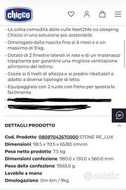 Vendo next to me della chicco ottime condizioni , usata solo per i primi mesi . Do insieme anche cuscino riduttore . Disponibile anche a spedizione ma a carico dell’acquirente . Prezzo 100€