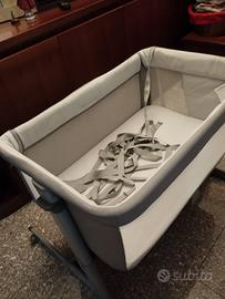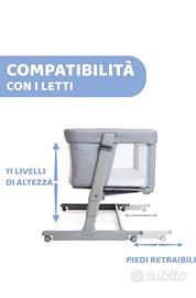 Chicco Next2Me Dream Evo, Culla Neonato Fianco Letto Eco+, Inclinabile, Spondina Apribile, Altezza Regolabile, 4 Ruote, Materasso e Borsa da Viaggio Inclusi, Grigio