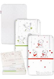 Compreso nel prezzo 2 set di lenzuola 100% cotone certificato Oeko-tex con comprimaterasso traspirante.
