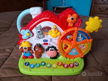 Chicco Nuova Fattoria Parlante che introduce il bambino nel mondo degli animali della fattoria attraverso modalità di gioco evolutive ed insegna in italiano e in inglese I nomi e versi degli animali della fattoria.