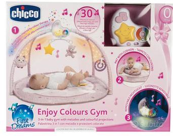 La Chicco Palestrina dei Colori Rosa è un centro attività completo pensato per stimolare vista, udito e movimento fin dalla nascita, creando un ambiente rassicurante e coinvolgente 🌙✨