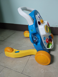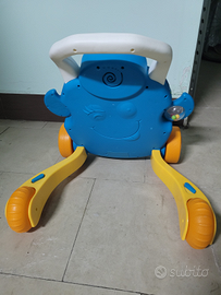 Basta appoggiarsi, iniziare a camminare e subito inizia a suonare un divertente twist che si interrompe appena il bambino si ferma, invogliandolo così a camminare ancora.
