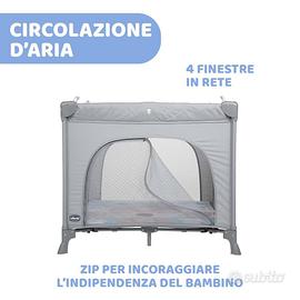 Box lettino neonati da viaggio per bebè e bambini dalla nascita fino ai 15 kg. Pieghevole e compatto , culla da campeggio con tappeto gioco , finestre in rete , 4 maniglie e borsa da viaggio .