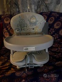 Sedia ChiccoPocket fissabile alla sedia di casa per far consumare il pasto in autonomia con dovuta sicurezza. Provvista di cinghie di ancoraggio e vassoio frontale. Pieghevole e trasportabile.
