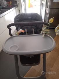 Seggiolone Chicco usato come nuovo Grigio con 4 rotelle, Regolabile con vassoio spazioso Reclinabile...Diverse.altezze più gioco attaccato.No PERDITEMPO NO SPEDIZIONE...FIRENZE LE CURE