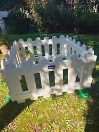 Staccionata Chicco in plastica, utile come recinto o barriera per scale. Completa di quattro piedini e scatola. Buone condizioni