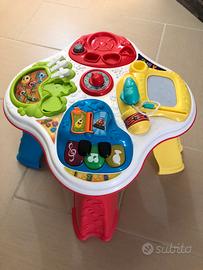 Chicco Artsana,tavolo bilingue cresci e impara per stimolare il gioco creativo,funziona perfettamente,senza graffi ne usure,(nuovissimo)mancano quei 3/4 pezzi tipo (piattino,oliera,sale&pepe)e lo scatolo.Misura cm.42x70 circa,acquistato in farmacia e pagato 45.00 euro,vendo a euro 5.00 visibile per consegna a mano presso capodichino Napoli 3927802511