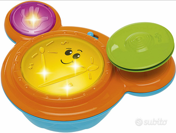 E' un tavolo musicale 3 in 1 completo di 8 attività manuali. Offre, infatti, 3 centri attività per consentire ai bambini di giocare insieme e promuovere lo sviluppo della sensibilità musicale: 1. Batteria: con 3 attività elettroniche , 4 led luminosi e 3 modalità di gioco (tamburo libero, tieni il ritmo, composizione): 2. Maracas: con un rullo e delle linguette colorate per giocare. 3. Consolle da Dj: con tante attività manuali come uno slide, un disco per lo scratching e una puntina per il giradischi. Le 3 attività del tavolo sono rimovibili per permettere ai bambini di giocare dove vogliono.