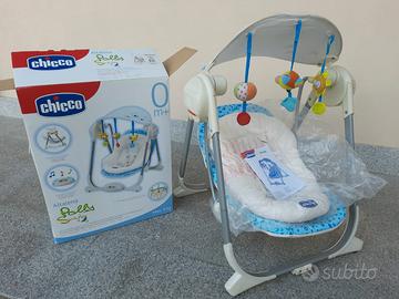 Compresa nel prezzo, l'altalena Chicco Polly Swing, in perfette condizioni ad eccezione del meccanismo che la fa basculare elettricamente. Dondola soltanto a spinta.