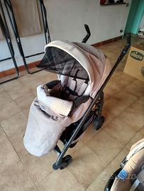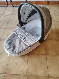 Composto da passeggino pieghevole, ovetto con base da lasciare in auto, navicella/culla portatile.