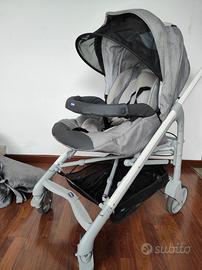 Completo di tutti gli accessori originali: navicella, ovetto (con basamento Oasys) e passeggino. Borsa da agganciare al manico contenente materassino fasciatoio e copertura anti pioggia. Tutte le cinture presenti e funzionanti.